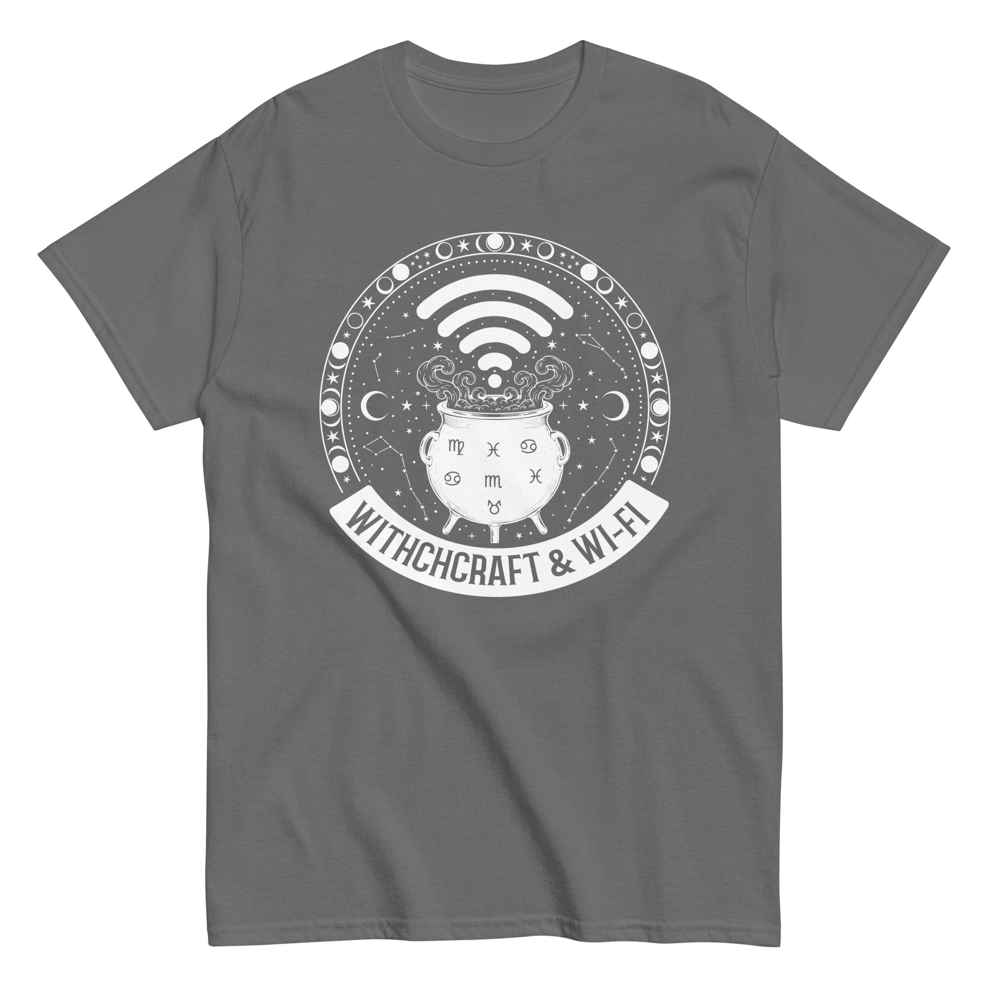 Witchcraft & Wi-Fi T-Shirt | Funny Modern Witch Tee | Occult Humor Celestial Shirt | Magical Cauldron Graphic Tee