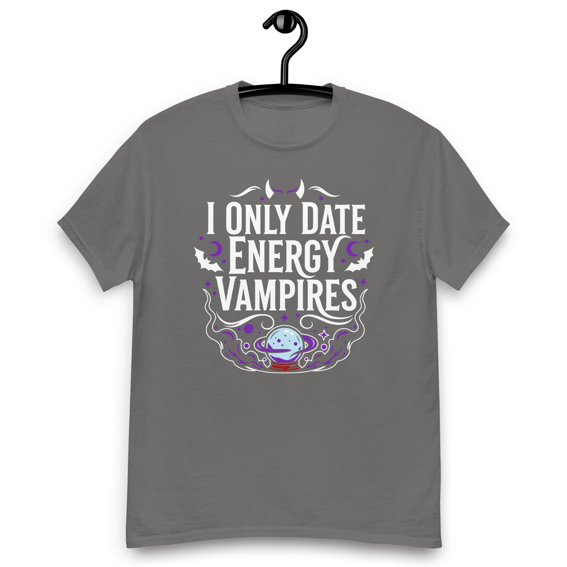 I Only Date Energy Vampires T-Shirt | Funny Goth Humor Tee | Occult Vampire Bats Shirt