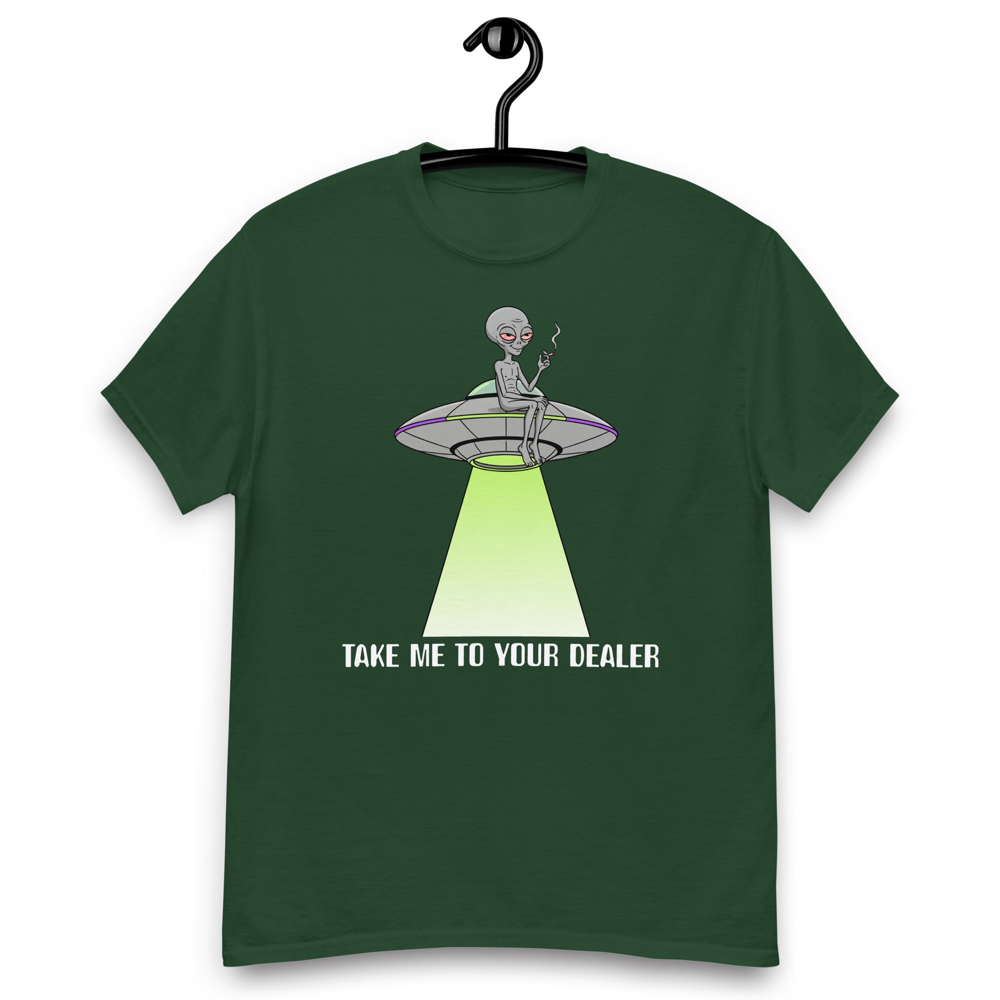 Take Me To Your Dealer T-Shirt | Funny Alien UFO Graphic Tee | Weed Stoner Conspiracy Shirt
