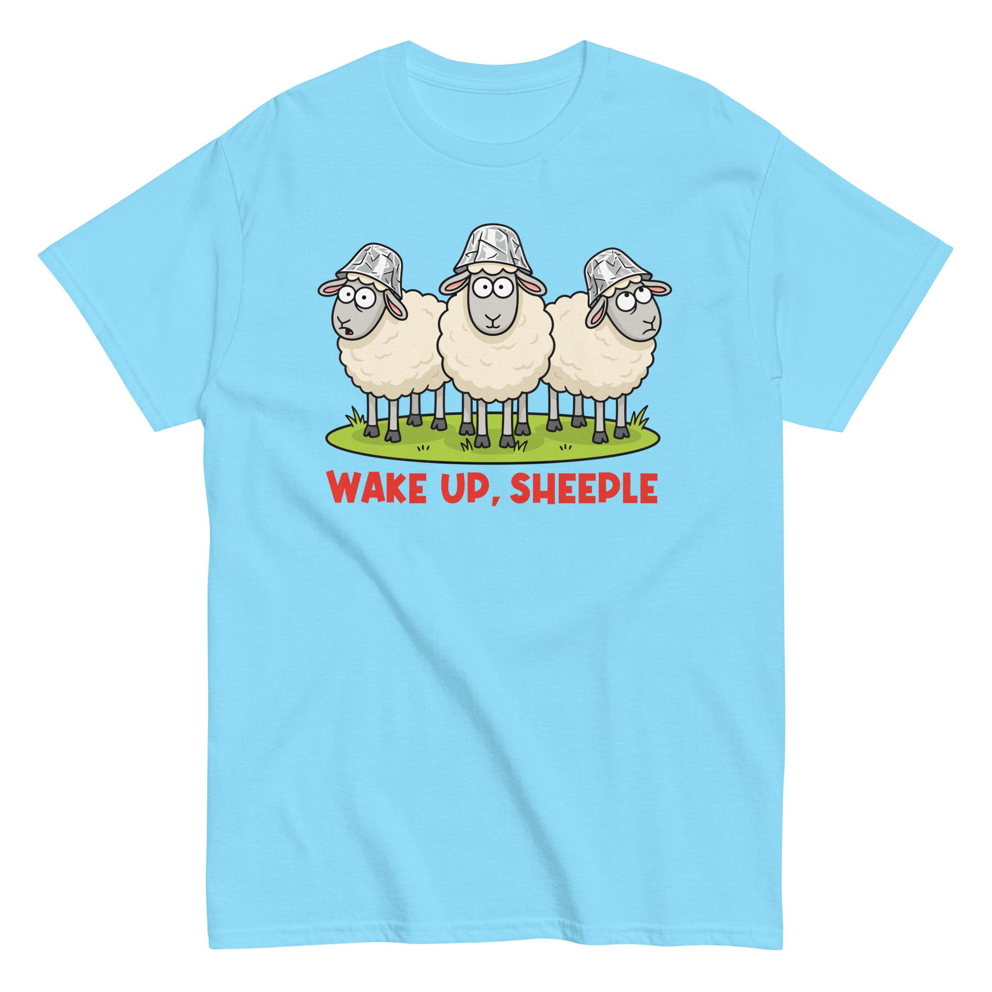 Wake Up Sheeple T-Shirt | Funny Conspiracy Theory Tee | Tin Foil Hat Sheep Graphic Shirt